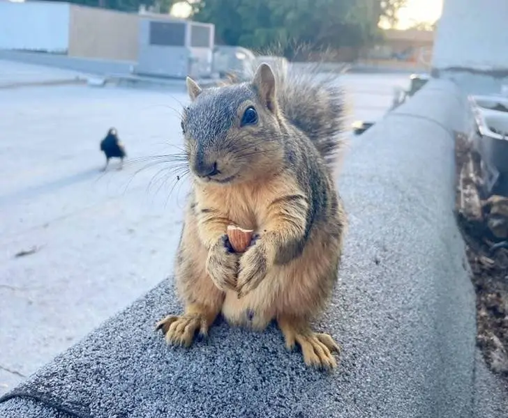 And THEN... one of our local squirrels (Molty Muldoon) decided to check the owl out... BE CAREFUL!