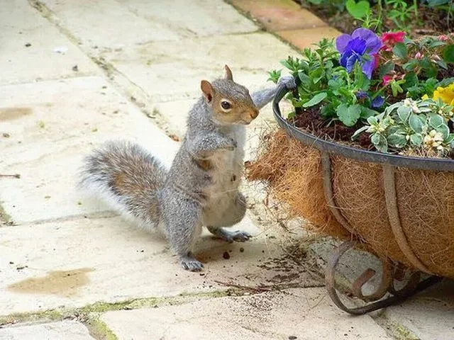 My strawberry plants are blooming & starting to produce fruit again and this #squirrel was on the job, crawling all over the GreenStalk planter and carefully inspecting their progress.