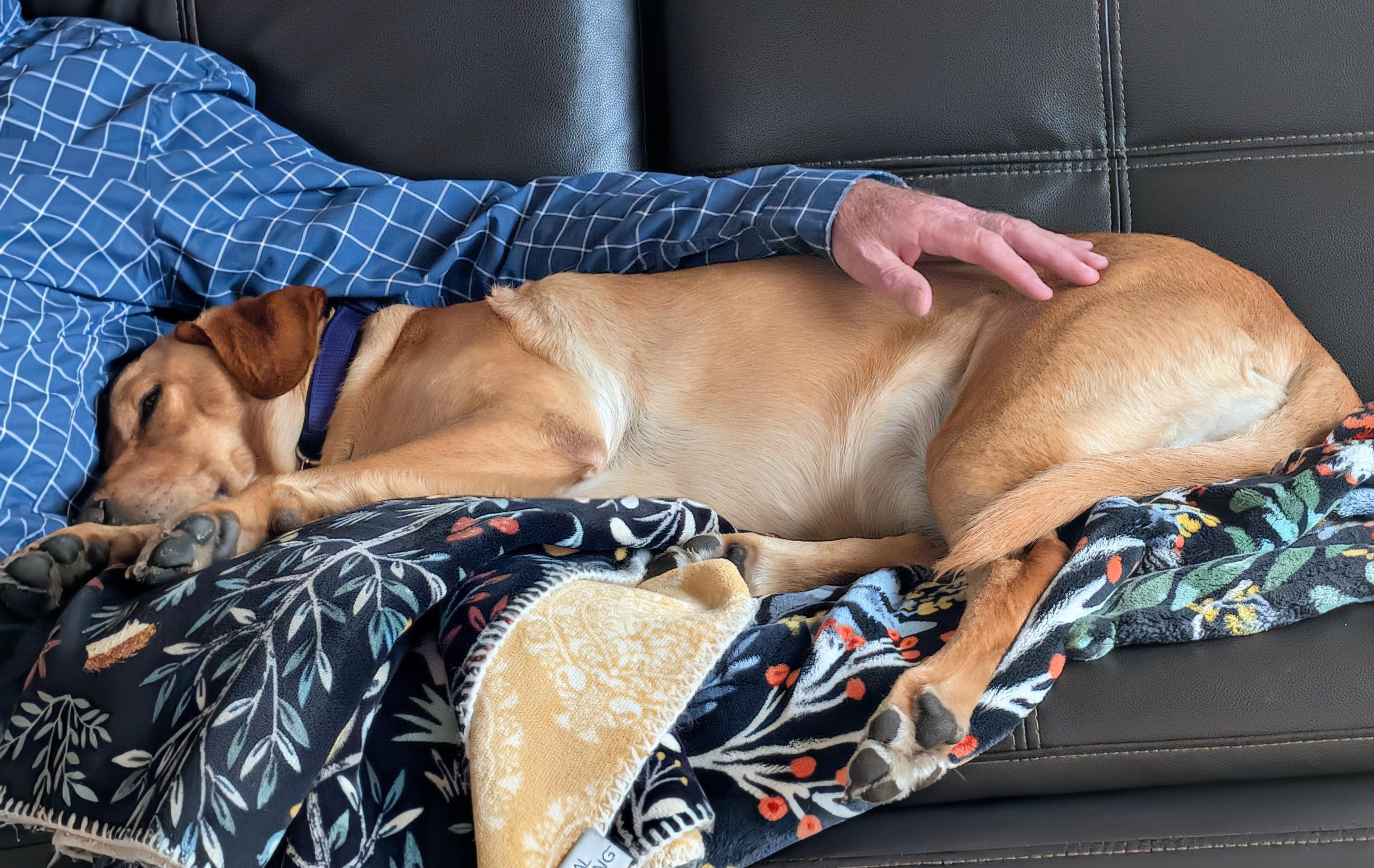 Summer spends lots of time with her pal and he spends a good part of his day in a recliner in front of a pretty big television screen. She watches too and is especially interested when there are animals.