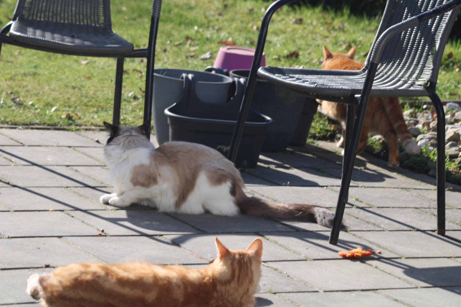 Heute waren insgesamt drei hungrige Mäuler an den »Näpfen« und sie waren mit zwei Dosen Katzenfutter zufrieden 😀