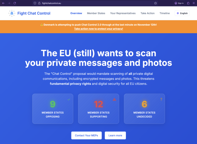 Learn about the EU Chat Control proposal and contact your representatives to protect digital privacy and encryption.fightchatcontrol.eu