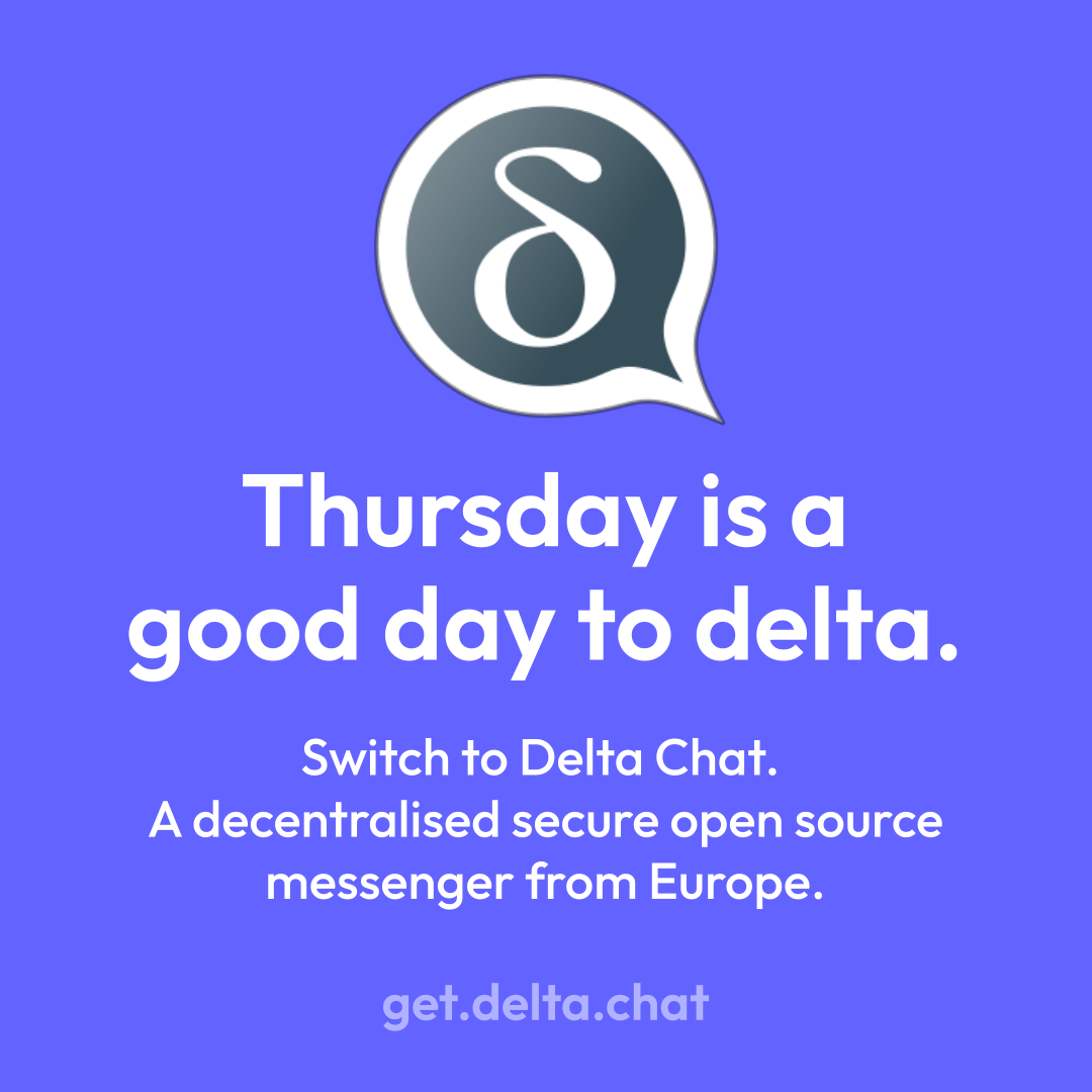Switch a loved one to #DeltaChat โ the decentralised secure open source messenger from Europe.