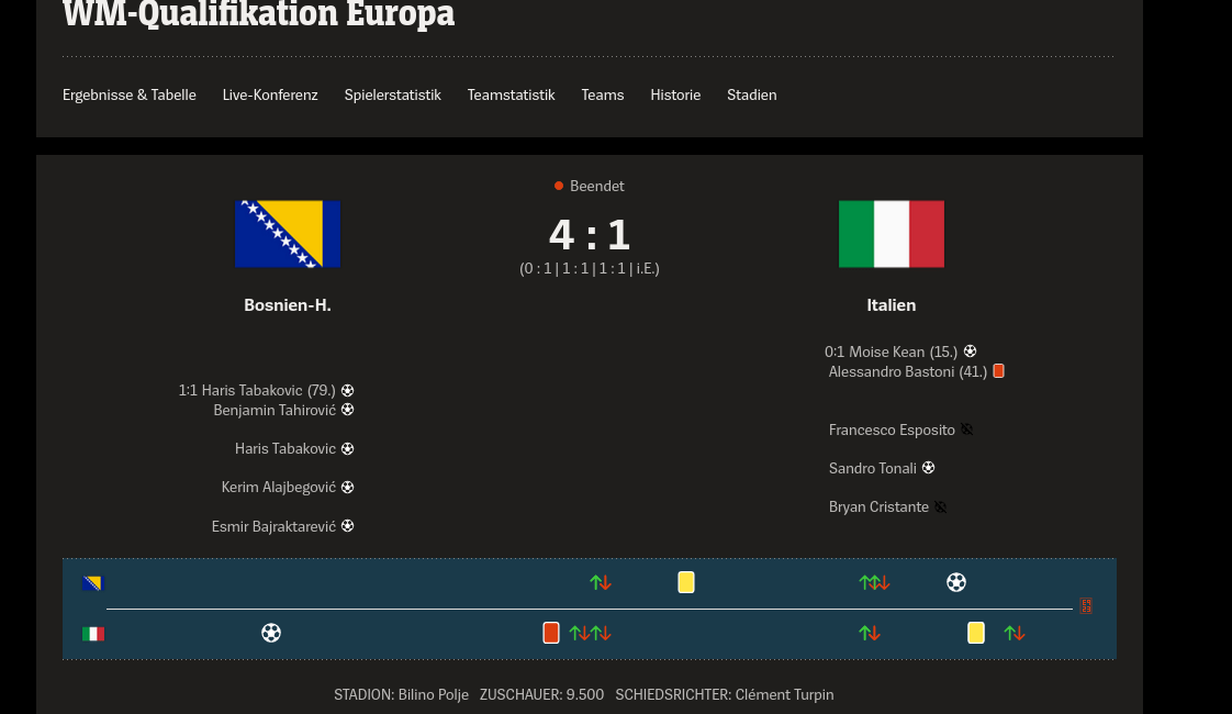 Italien verliert 4:1 gegen Bosnien und Herzegowina