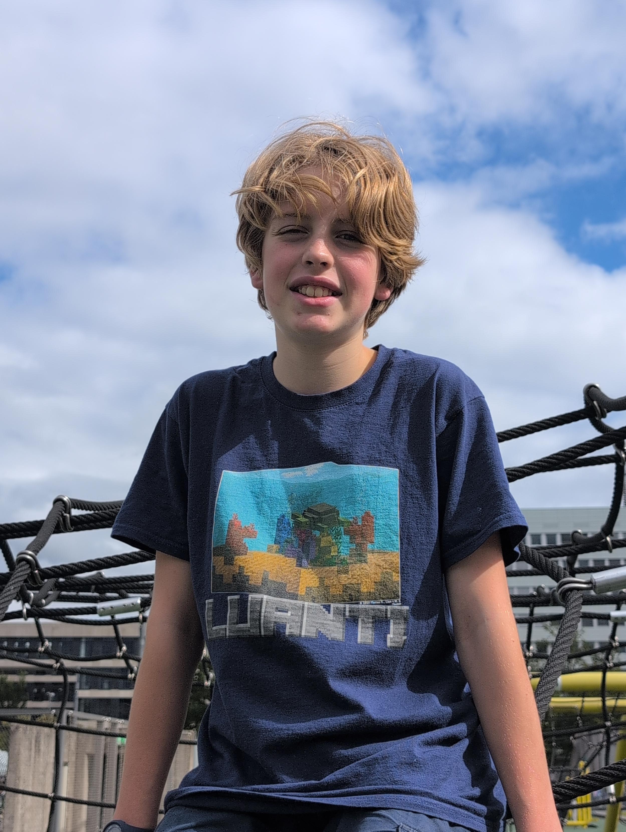 Stop by the #Luanti stand at #FOSDEM this weekend to buy a t-shirt for you, your friends, or your kids!