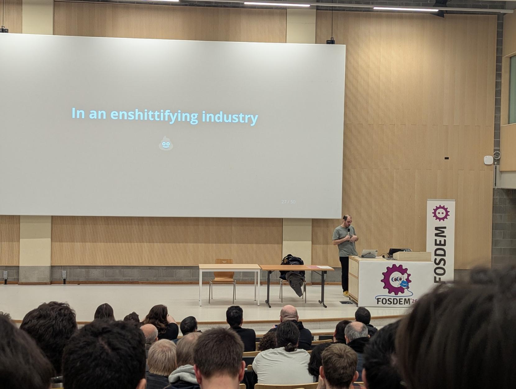 It was an honor to speak at the #FOSDEM. Thank you for the possibility to share my message on how to lead change from closed source to #opensource and why contributing to this transition actually matters more than ever.