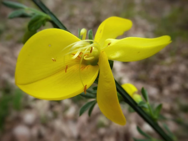 _(Bildbeschreibung: Eine einzelne, noch mit Wassertropfen bedeckte, halbgeschlossene gelbe Blüte des Hufflatichs.)_