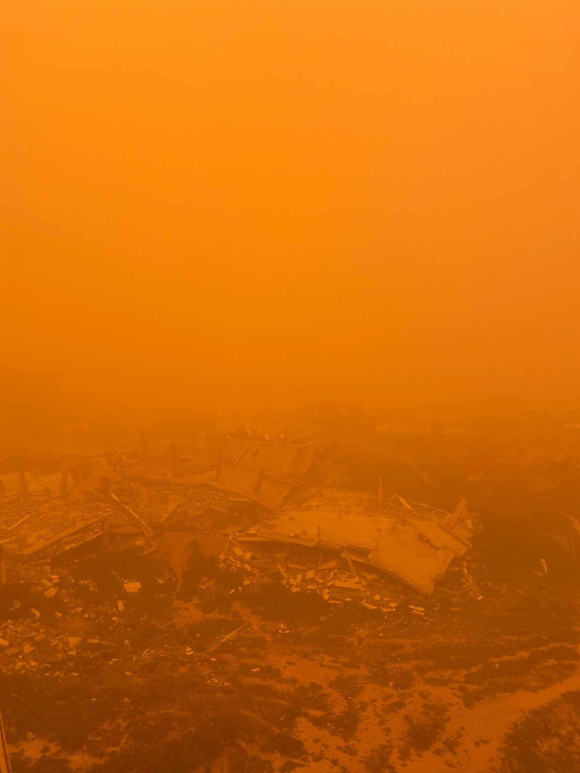 A strong sandstorm is hitting the area. Many tents have been blown away, and palm trees have fallen onto the tents of displaced people, causing injuries to some of them.
