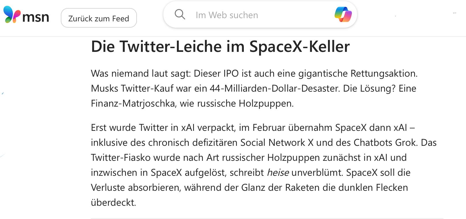 First, #Twitter was packaged into xAI; then, in February, #SpaceX took over #xAI—including the chronically loss-making social network #X and the chatbot #Grok.«