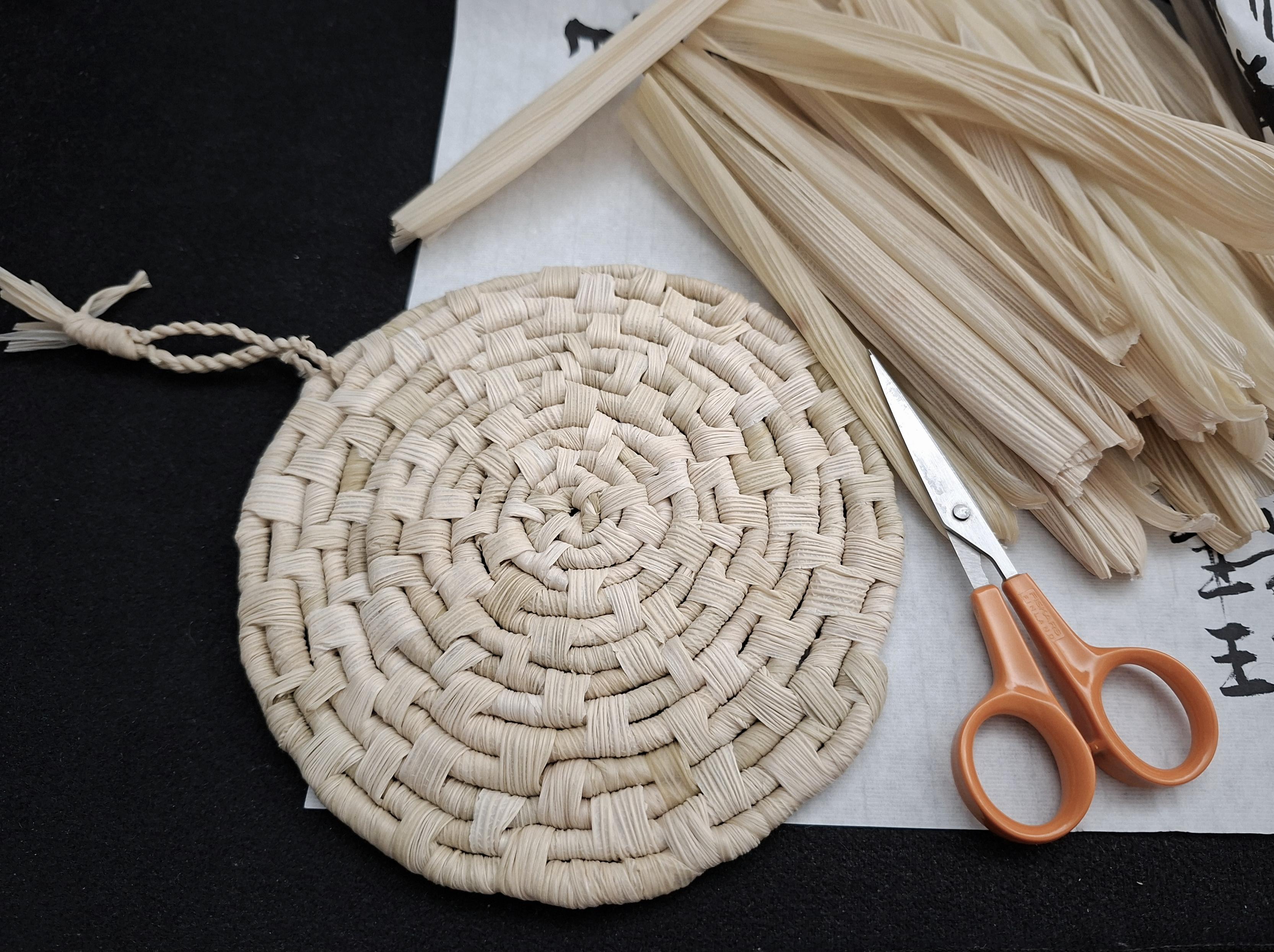 挑戰天然纖維的蒐集跟編織,玉米殼隔熱墊完工 :blob_happiness: