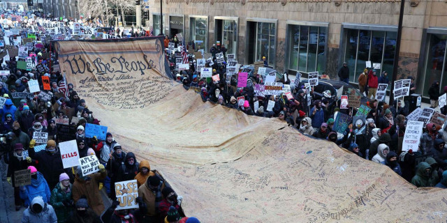 Les manifestants entendaient également dénoncer la politique de l’administration Trump et la mort de Renee Good et d’Alex Pretti, tués début janvier sous les balles d’agents fédéraux.Service photo (Le Monde)
