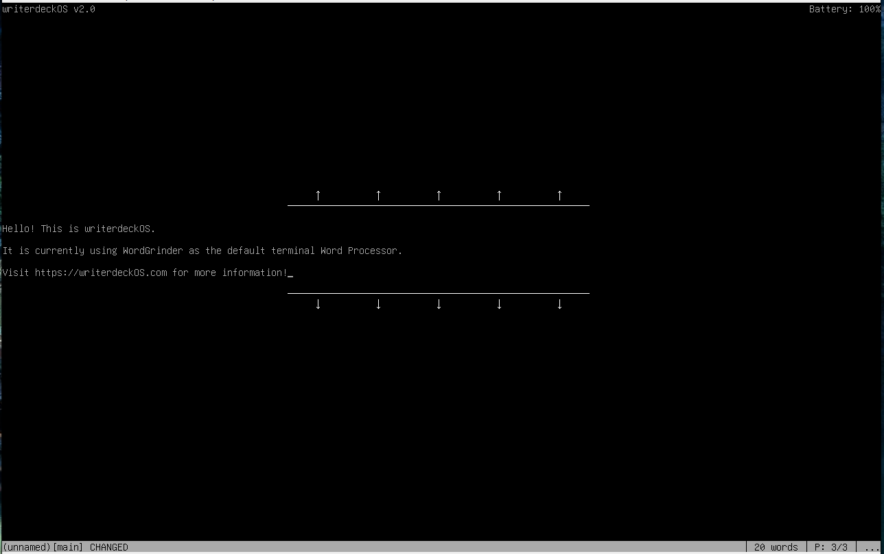 The Terminal Edition defaults to using wordgrinder, but the follow word processors and text editors are loaded into the system and its easy to swap over to them: