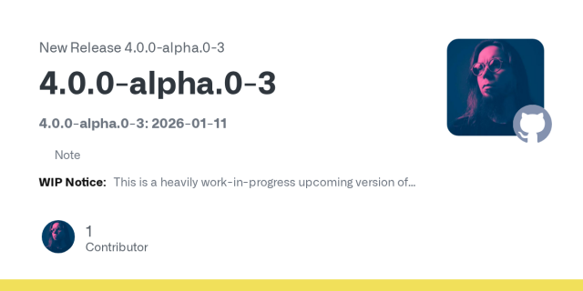 4.0.0-alpha.0-3: 2026-01-11 NoteWIP Notice: This is a heavily work-in-progress upcoming version of Mastodon Bird UI. This version is part of the ongoing major rewrite (see issue #172) and isn't yet...GitHub