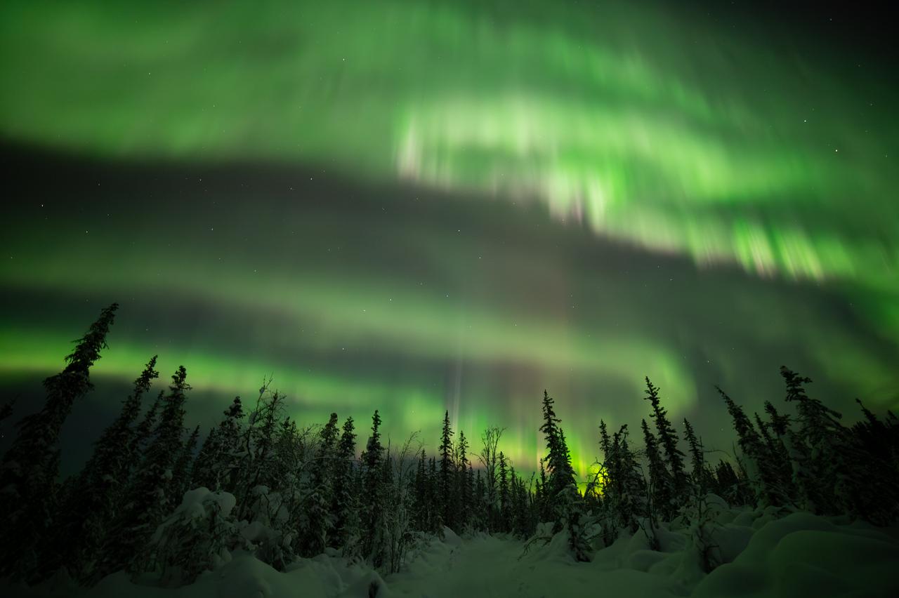 The first night we shot auroras around the cabins, and got to grips with our camera gear in the cold conditions. Everyone did well. The second night we went harder, and ventured into the forest on a quiet little trail.