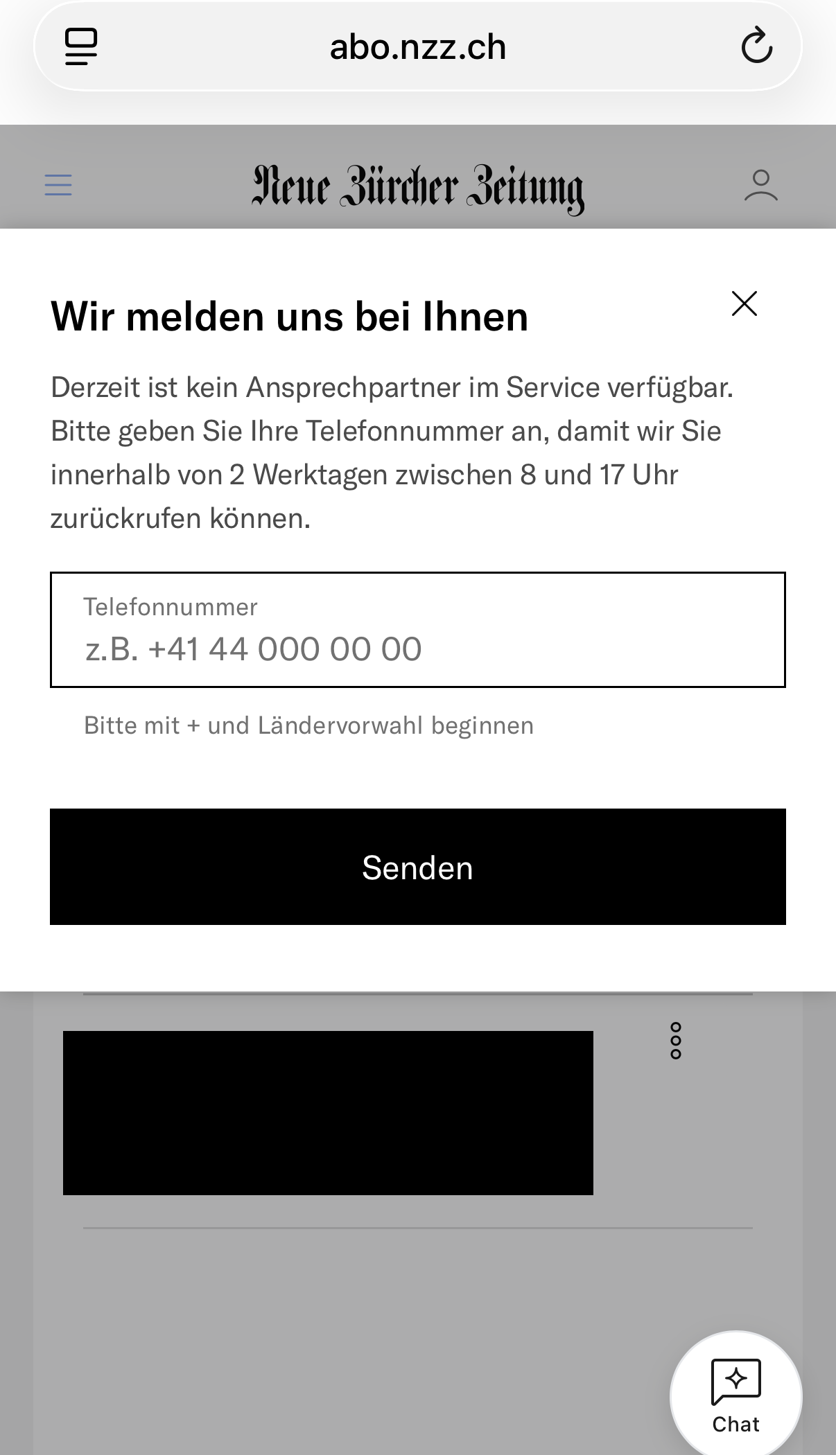 Bei der #NZZ kann man Abonnements nicht mehr direkt kündigen, sondern muss – zu Bürozeiten! – mit einem Menschen über seinen «Kündigungswunsch» chatten … 🤦🏻‍♂️