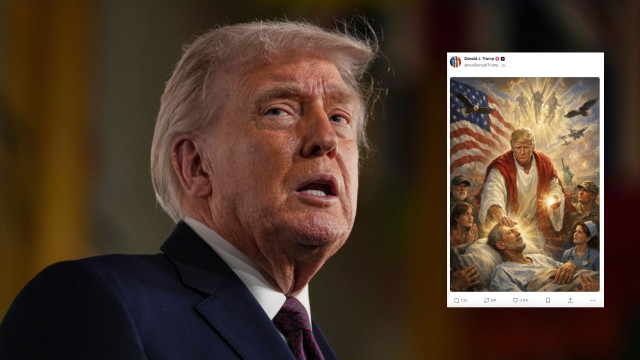 Today is Orthodox Easter, and about 45 minutes after attacking the Pope, Trump posted an image of himself in the place of Jesus, apparently healing a sick man in a bed, surrounded by a soldier, a nurse, a woman praying, and an older man."