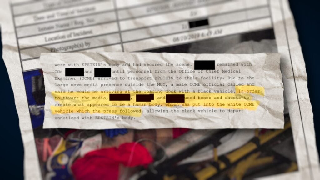 FBI Akten: So gelang den Abtransport von Epstein ins Krankenhaus. Wärter nutzten eine Attrappe, um die Medien zu täuschen.Tim Schott (Apollo News)
