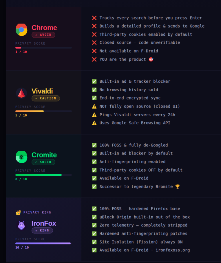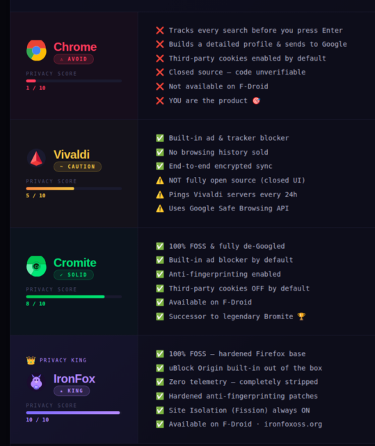 🟢 Cromite — FOSS, de-Googled Chrome
