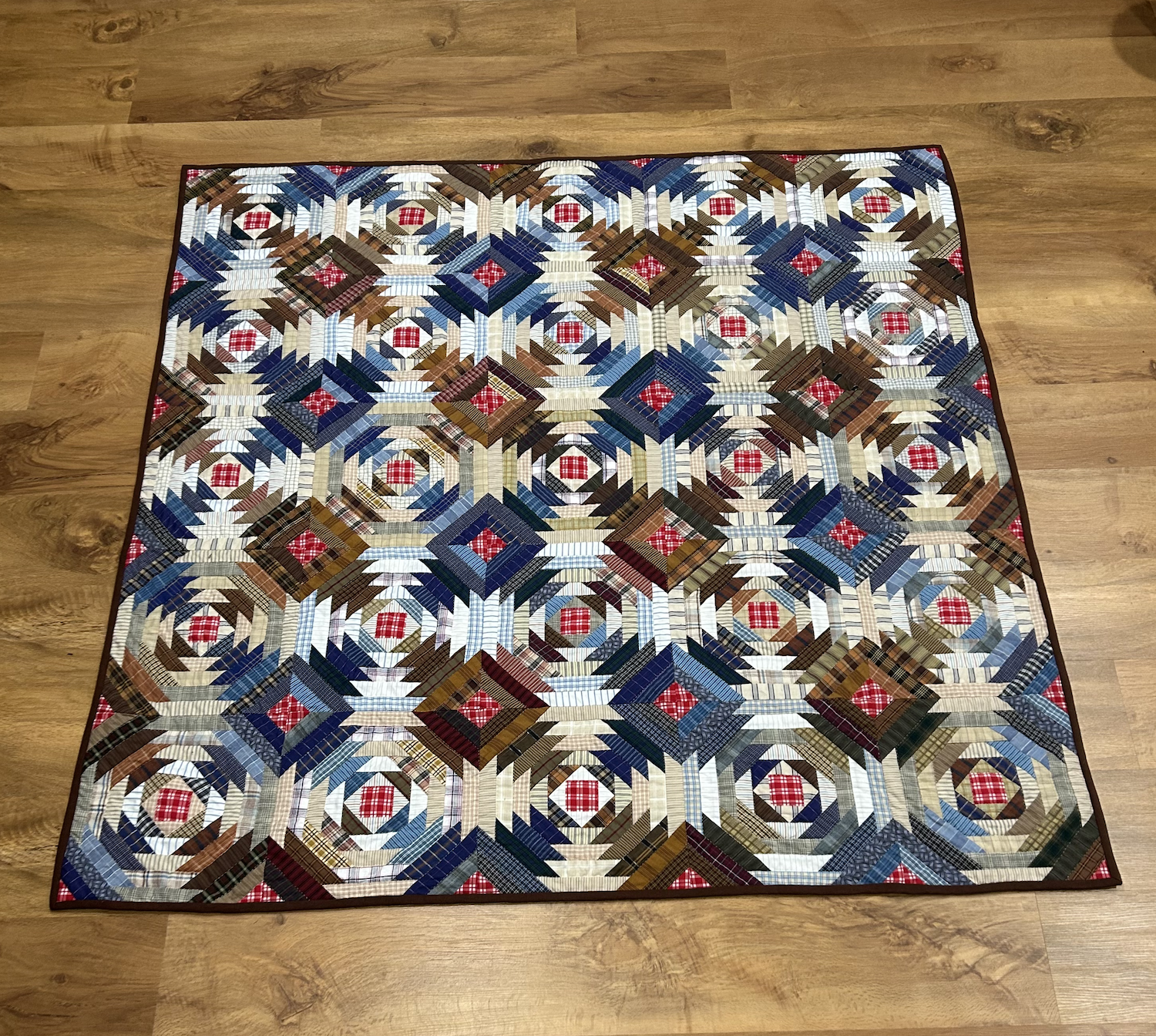 Quilt finish day! This is one of my favorite quilts ever, I think. It's a 5'x5' throw made of shirting fabrics I'd collected. Some came from random fabric sales and others came from a friend who graciously gave me the stash she was too old to use.