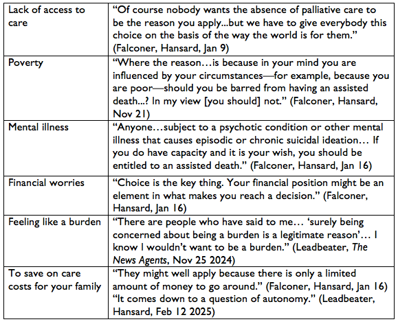Falconer and Leadbetter provide some reasons why a person "might want to apply for an assisted death".